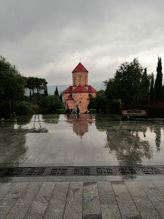 Şarap evinden çıkınca tur grubunun yanına dönüp otobüsle Gürcistan'ın en büyük kilisesi olan Kutsal Teslis Katedrali'ne gittik. Gerçekten devasa bir kilise ve şehrin dört bir yanından görülüyor. Sameba Kilisesi de denilen bu kilisenin toplam alanına bakınca dünyadaki en büyük dini yapılardan biri olduğunu tahmin etmek çok da zor değil. Kilise 1995 - 2004 yılları arasında inşa edilmiş yeni bir kilise ama şimdiden şehrin simgelerinden biri hâline gelmiş.